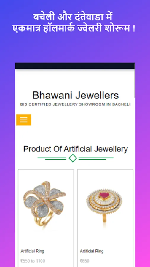 Bhawani Jewellers is located in Bacheli, Dist. Dantewada, Chhattisgarh. We deal in Gold, Silver, Platinum, Diamond & Immitation Jewellery. Now you can check our catalogue & even order online from this android app.