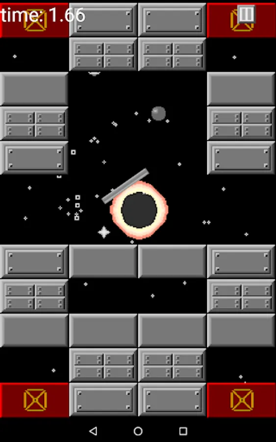 The objective of SpaceOut is to destroy all of the blocks as fast as possible by hitting the ball with your paddle. You also have to be careful not to let the ball get pulled into the black hole in the center.