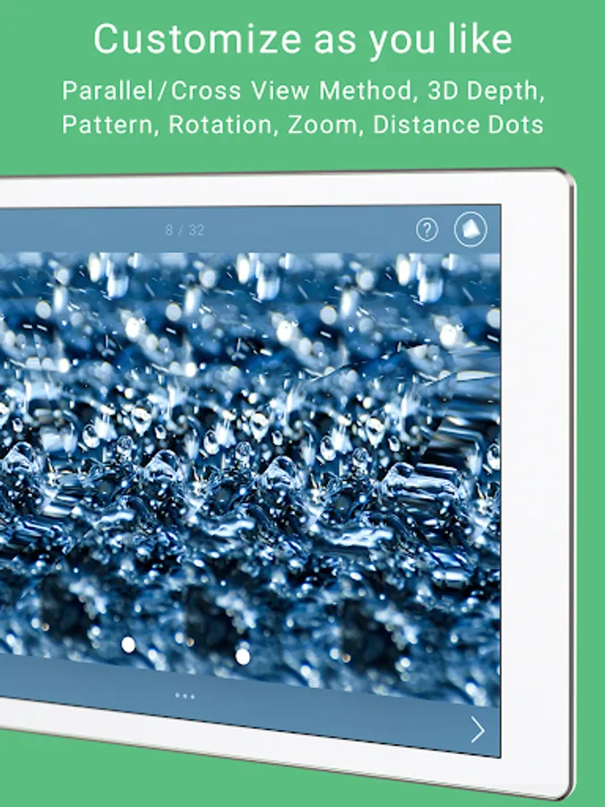 Adjust parallel/cross view method, depth, background pattern, and distance of dots in realtime