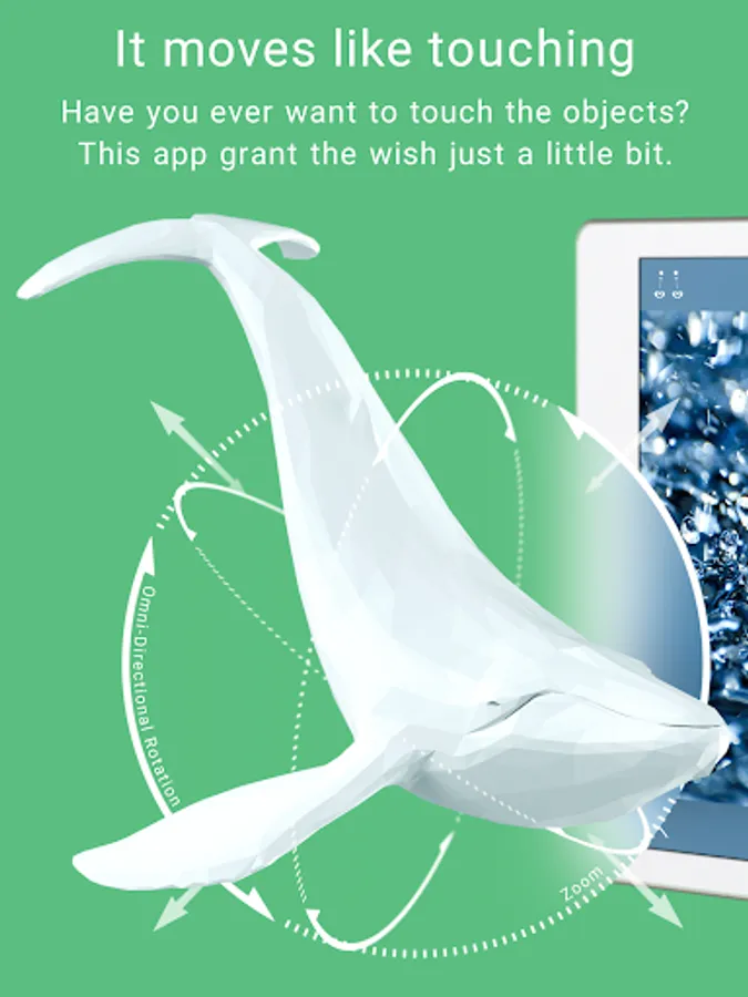 Rotation with one finger, scaling with pinch.