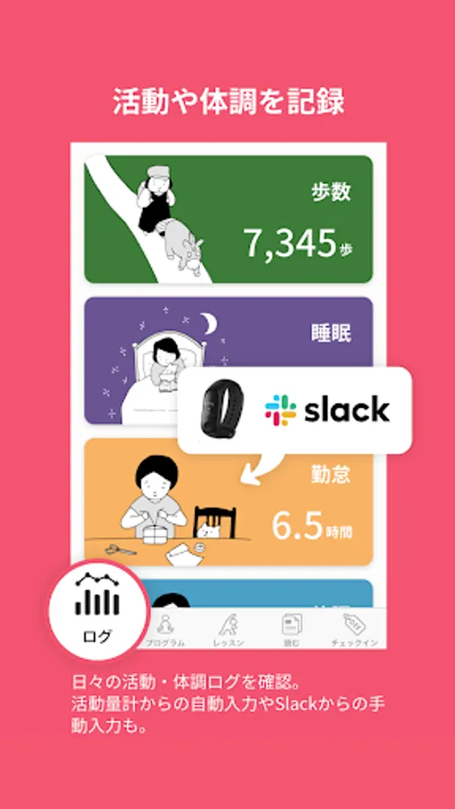 You can track your daily activities such as steps, meals, sleep time, weight, and lesson participation.