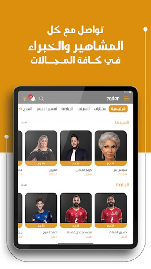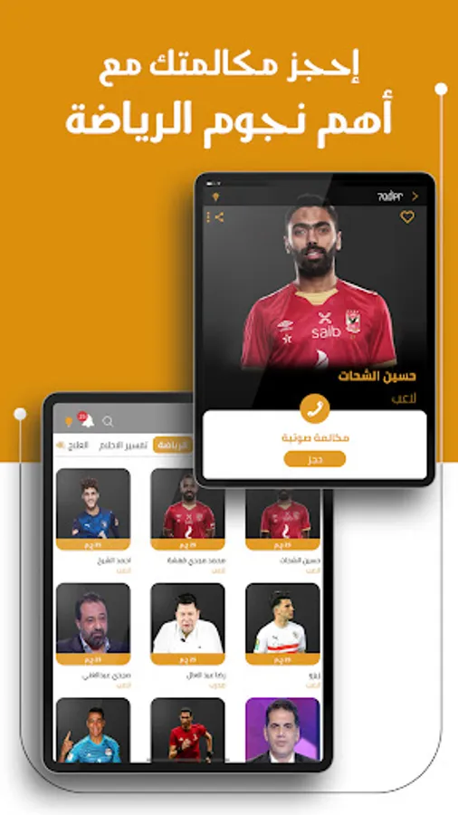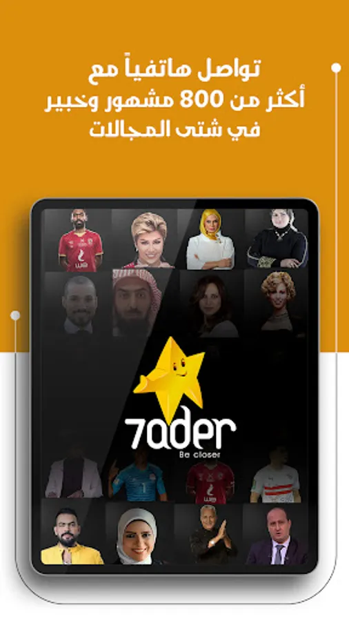 The application offers you an exceptional experience in communicating with the stars and celebrities of the Arab world, you can now communicate directly with actors, singers, media professionals, athletes, doctors, chefs, advocates, nutritionists, fashion and football analysts, as well as tax experts, the banking sector, legal consultants and others in various fields. They are always ready to receive your calls on the application after reserving the call.