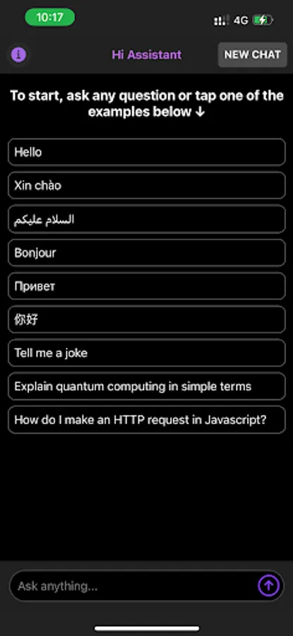 Hi Assistant - a natural language processing engine driven by AI technology that allows you to converse like a human and moreover it has a remarkable ability to interact in the form of conversational dialogue and give the responses are surprisingly human. The app allows users to input a prompt and receive a response, making it a useful tool for writing, programming, and research. With its advanced language understanding capabilities, Hi Assistant can assist with tasks such as language translation, question answering, and even creative writing. Give it a try and see how it can enhance your workflow.