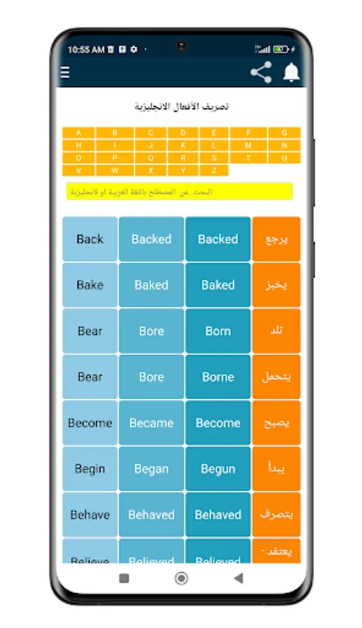 This application enables users to learn about the conjugation of verbs in the English language, especially irregular verbs, which helps to learn English grammar