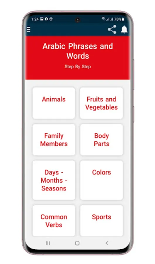 Looking to improve your Arabic language skills? Our app, "Arabic Phrases and Words", is the perfect tool to help you learn Arabic vocabulary quickly and easily. With our comprehensive collection of Arabic phrases and words, you'll be speaking Arabic like a pro in no time.