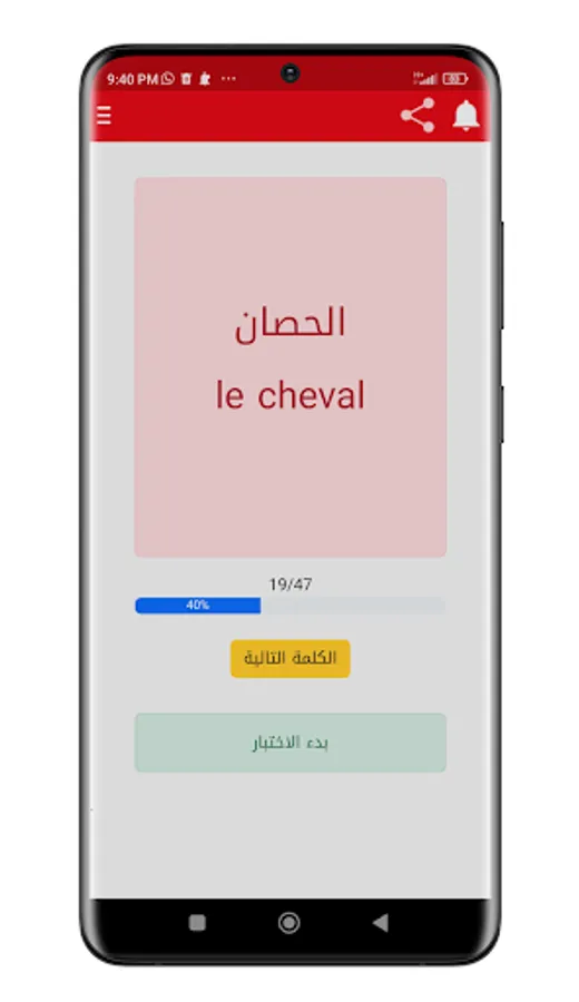 Kalimat in French application is your ideal partner in your journey to acquire the skills of learning the French language easily and fun. Whether you are a beginner or an advanced learner of the French language, this fun and comprehensive app will help you expand your vocabulary and improve your reading, listening and speaking abilities.