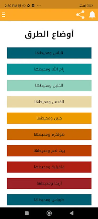 This application (road conditions) is designed to exchange information about road conditions between Palestinian cities