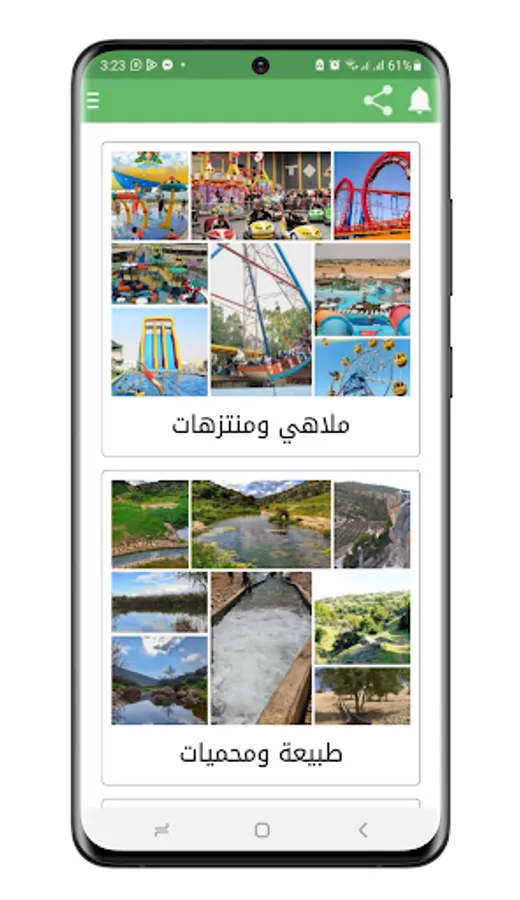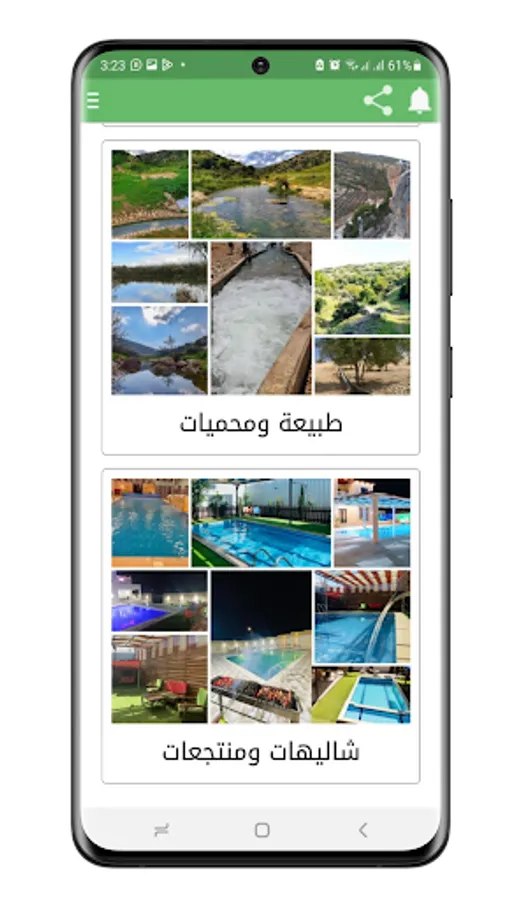 The application also displays updated information about other tourist attractions such as parks, gardens, amusement parks, resorts and chalets, while providing various pictures of these areas.