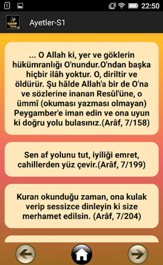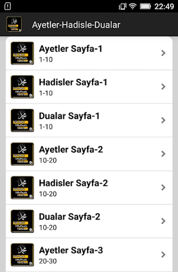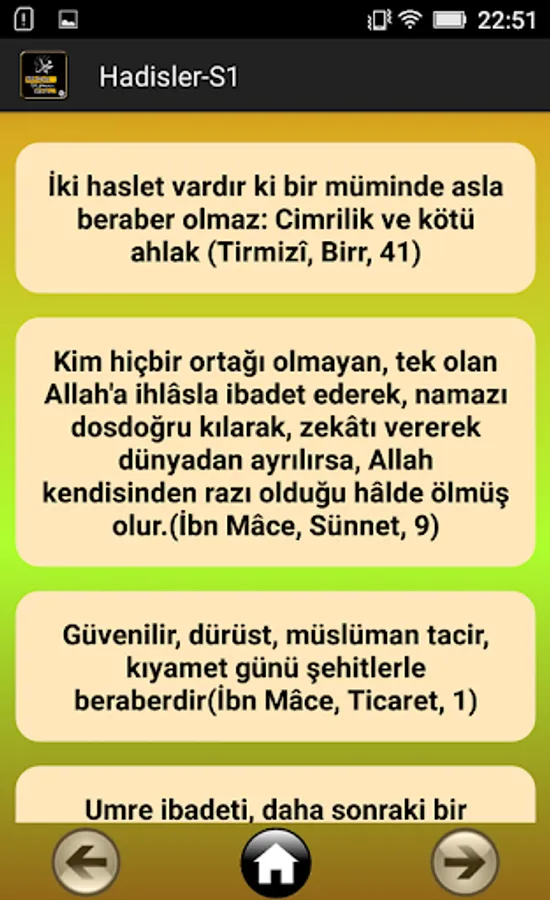 Verses display the hadith; Prayers are to follow the hadith screen.