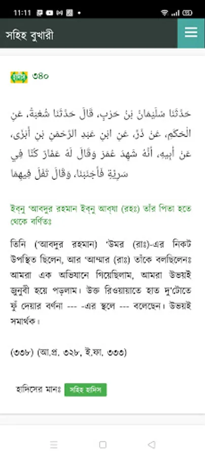 Bukhari Sharif This app is complete with all the pieces. The purest source of hadith is Sahih Bukhari Sharif. In our Bukhari Sharif Bangla app you will find 6573 hadiths. Hadith is easily available with hadith numbers. Bukhari Sharif Bangla full block app you can use at home and offline.