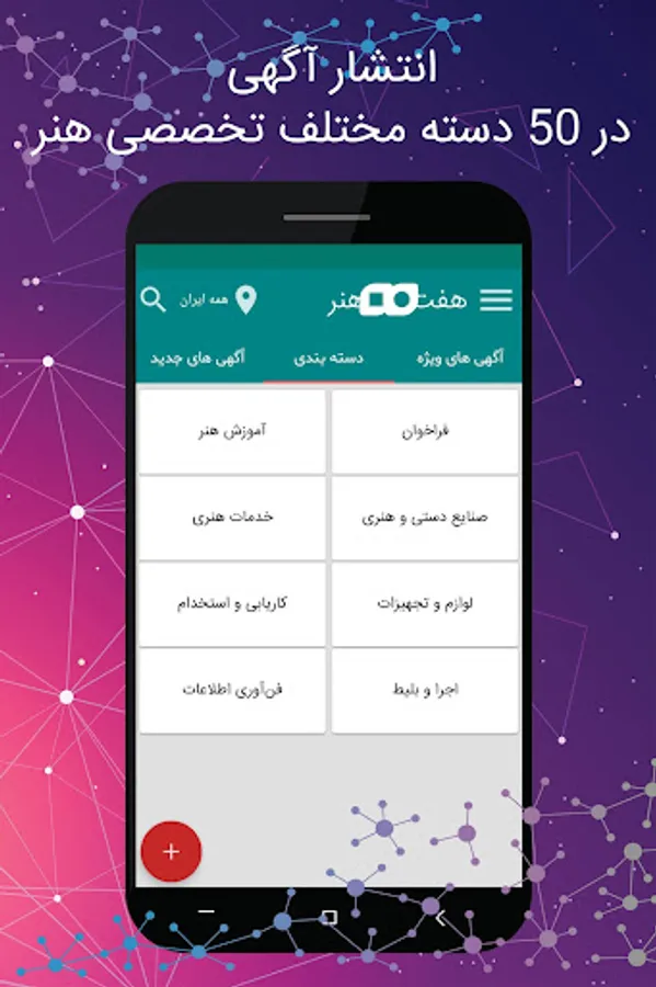 اپلیکیشن نیازمندیهای تخصصی هفتهنر بستر آگهی و اطلاعرسانی را برای هنرمندان و جامعه هنری ایران فراهم مینماید. اگر محصول یا کالای فرهنگی دارید، یا اگر خلاق هستید و تا به حال کسی پی به هنر شما نبرده است، این اپلیکیشن مهیاست تا به طور تخصصی و حرفهای هنر هنرمندان ایران زمین را به همگان معرفی کند.