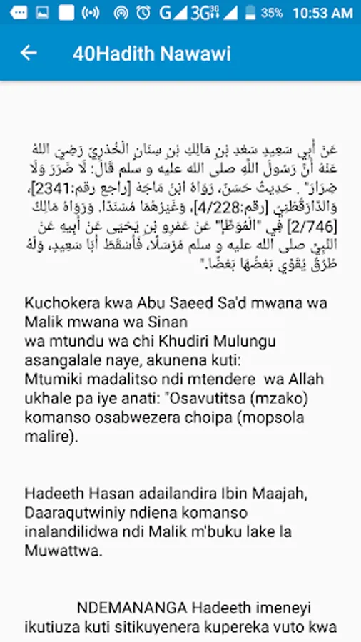 Read The teachings of the Prophet Muhammad (may peace and blessings of Allah be upon Him) in Chichewa and Arabic.