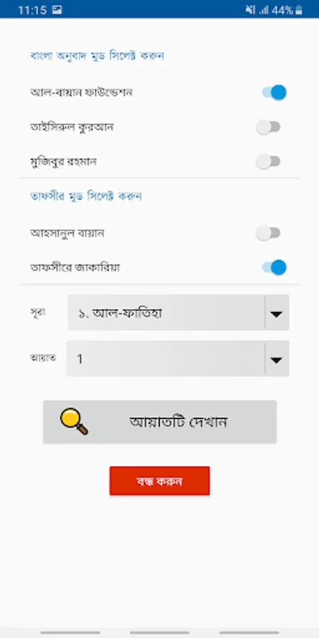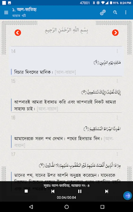 ⯎ আল কুরআন এবং সাথে বিশুদ্ধ মোট ৫টি বাংলা অনুবাদ আছে যা একই সাথে দেখা সম্ভব অথবা যে কোন একটি বা একাধিক একই সাথে আপনি দেখতে পারবেন ইনশাল্লাহ।