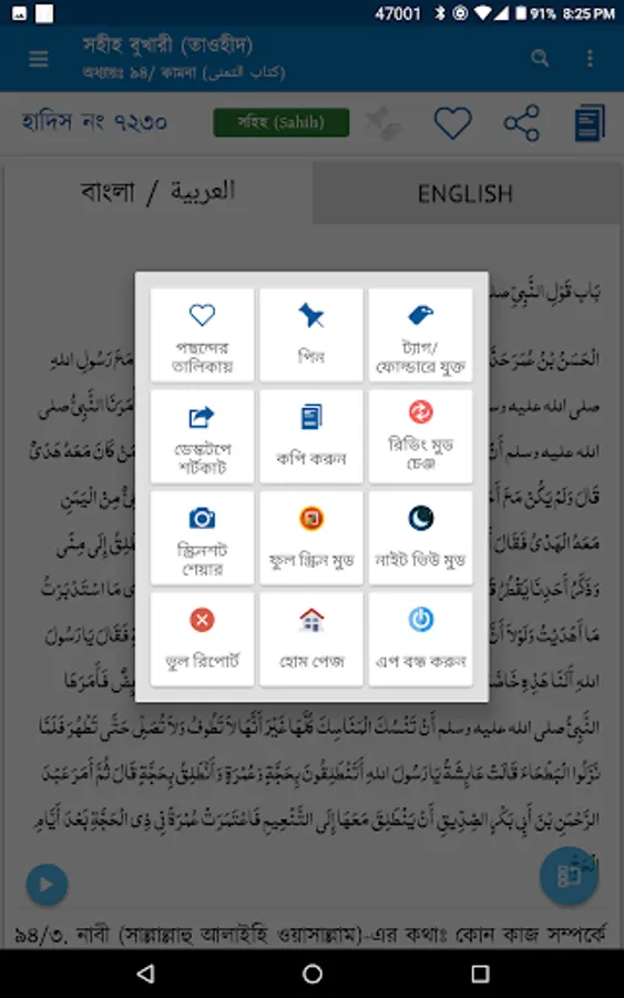 "বাংলা হাদিস" এটি শুধু একটি মোবাইল এপ নয় বরং এটি বাংলা ভাষায় ইসলামকে সঠিক ভাবে জানা এবং মানার জন্য প্রয়োজনীয় যে জ্ঞান অর্জন করা দরকার সেগুলিকে একটি ছাদের নিচে নিয়ে আসার একটি প্রচেষ্টা।