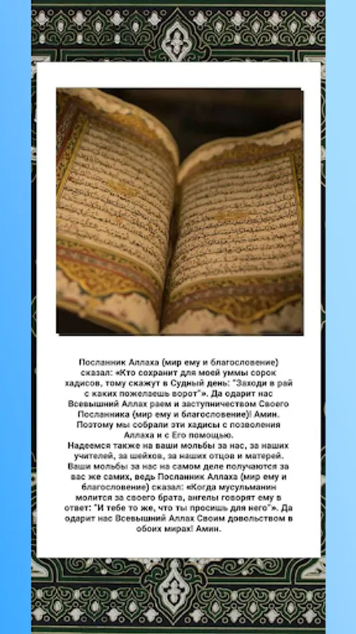 The Messenger of Allah (peace and blessings be upon him) said: “Whoever saves forty hadiths for my Ummah, they will say on the Day of Judgment: “Enter Paradise from whichever gate you wish.” May Almighty Allah grant us paradise and the intercession of His Messenger (peace and blessings be upon him)! Amine.