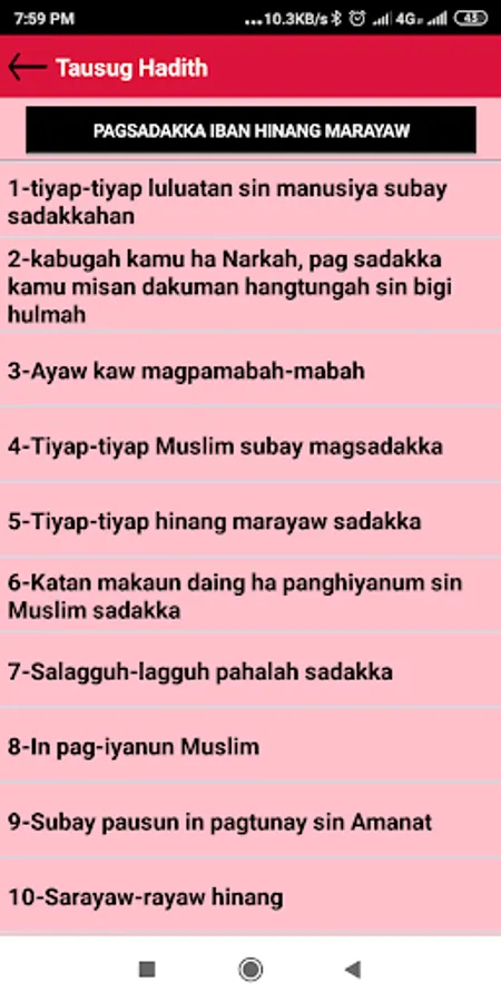 Manga Hadith (124 in taud sin luun niya) kiyawah daing ha kitab hi Shaykh Abdulwakil Tanjilil in ngan sin kitab "MANGA HADITH DAING HA RASULULLAH S.A.W.
