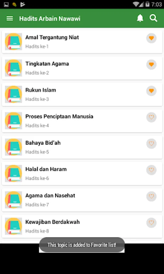 Arbain Nawawi or Al-Arba'in An-Nawawiyah (Arabic: الأربعون النووية) is a book containing forty-two selected hadith compiled by Imam Nawawi [1]. Arba'in means forty but actually there are forty-two hadith contained in this book. This book along with the book Riyadhus Salihin is considered to be the most famous work of Imam Nawawi and is accepted by Muslims throughout the world. This book is a favorite among students to start memorizing the hadiths of the Prophet before turning to bigger books.