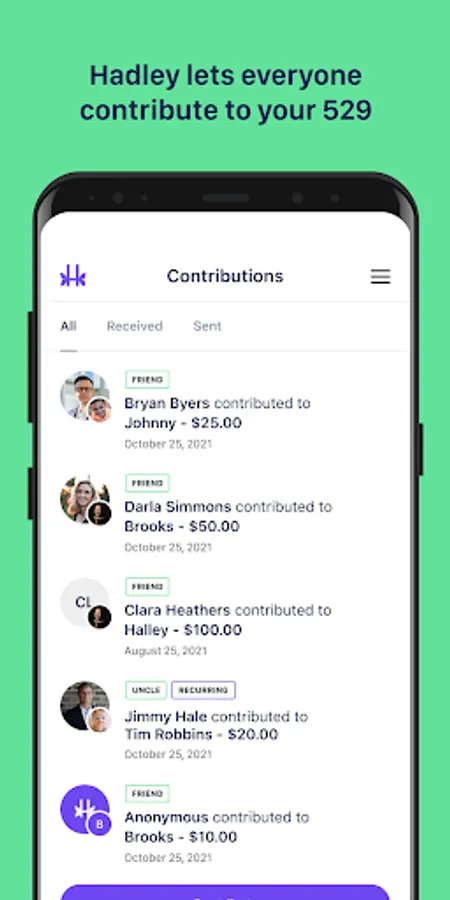 Hadley makes it super easy for anyone to send money straight to your 529 account. Link your 529 to Hadley in just seconds. Hadley works with all 529 plans.