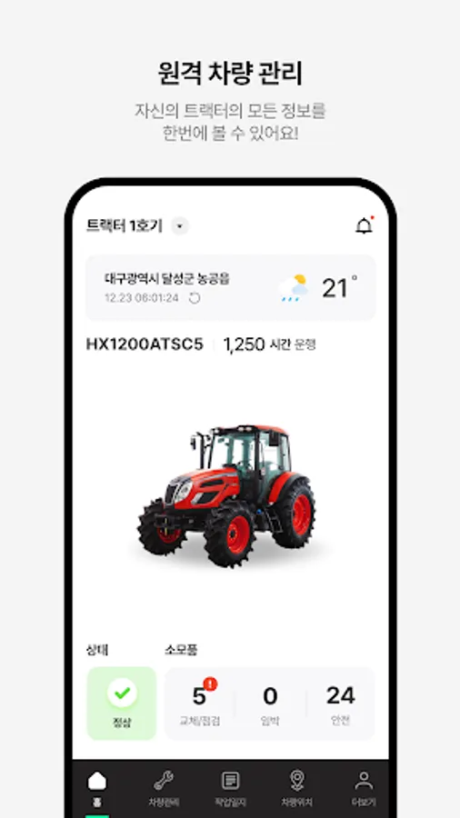 From vehicle management (remote vehicle management, fault status information, consumables management) to farming through Daedong Connect!