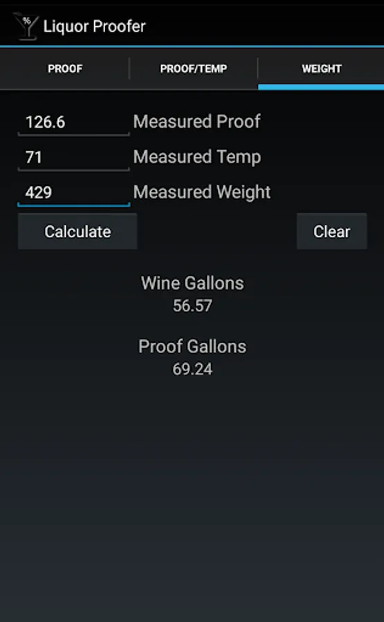 Liquor Proofer is a calculator for distillers. It replaces the bulky TTB gauging manual for proof and temperature conversions.