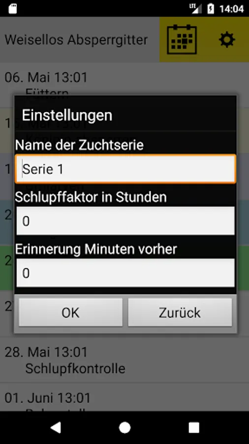 The breed calendar is set for a series, it can be directly in a calendar stored on the Android device and it also synchronizes with other devices.
