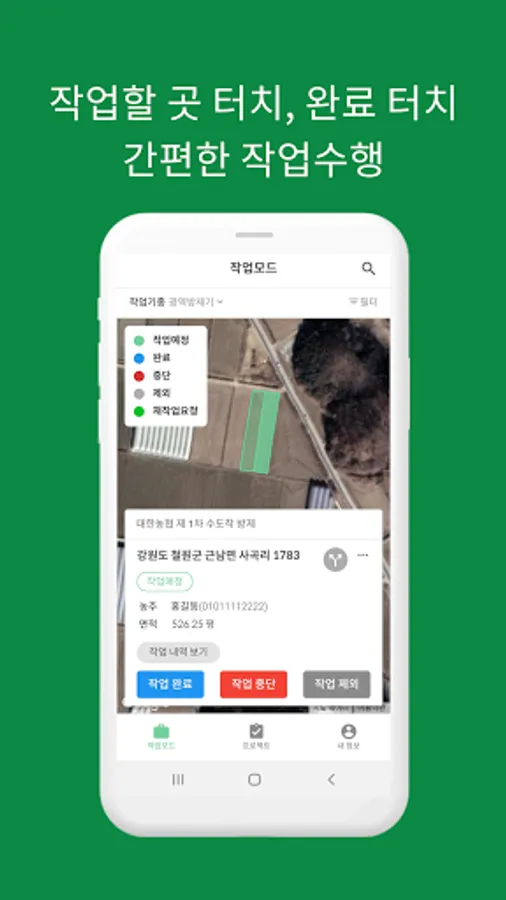 You can check the parcels to be worked on on the map, and record the completion/stop/exclusion of work.
