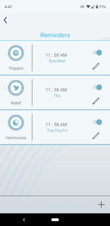 - Helpful reminder feature that you can access to schedule Frequency Sets and meet wellness goals