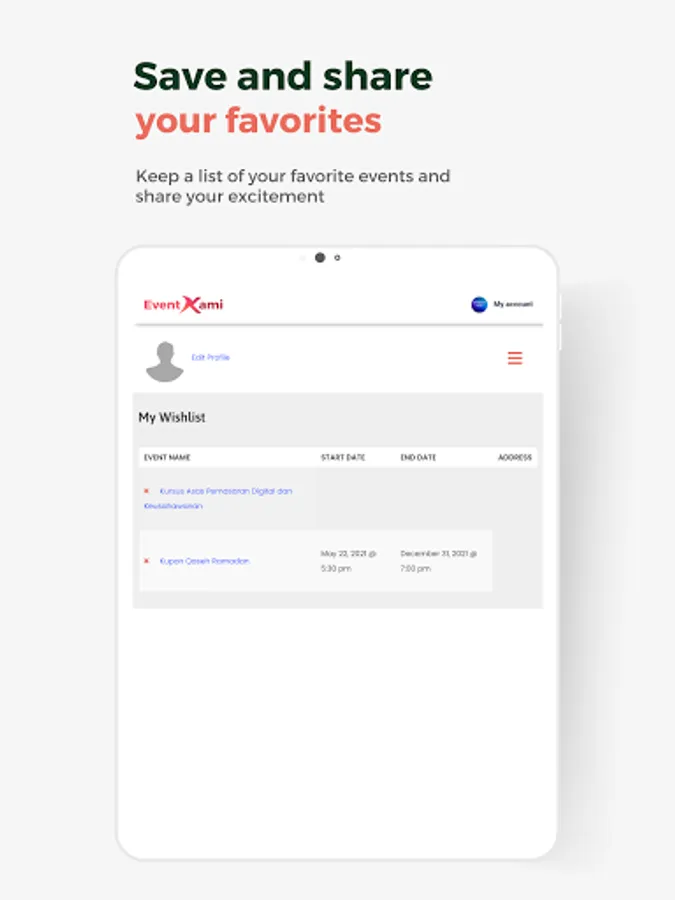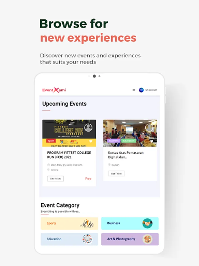 EventKami allows users to browse through a lot of events focusing on events organized by university students and mainly all types of events in Malaysia. Promote your app to all Malaysians and with every event registrations, EventKami will help B40 ladies and single mothers in Malaysia to boost their businesses online!