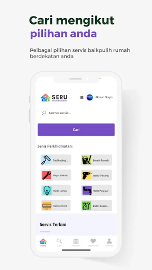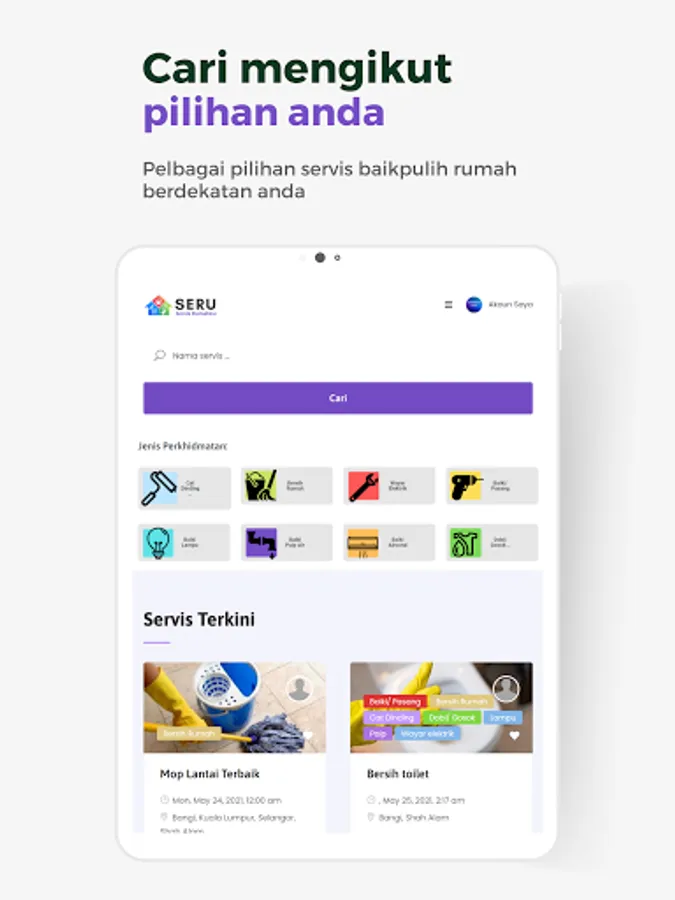 You can now search for all maintenance services for your house in SERU including house cleaning, plumbing, wiring, and other services! SERU helps Malaysians to easily search and book on the spot via one app.