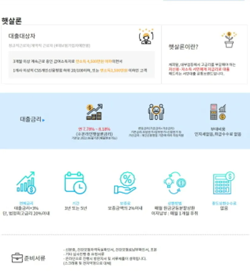 Sunshine Loan is for those with annual income of 35 million won or less for grades 1-7 or less than 45 million won with annual income of grade 6 or less.