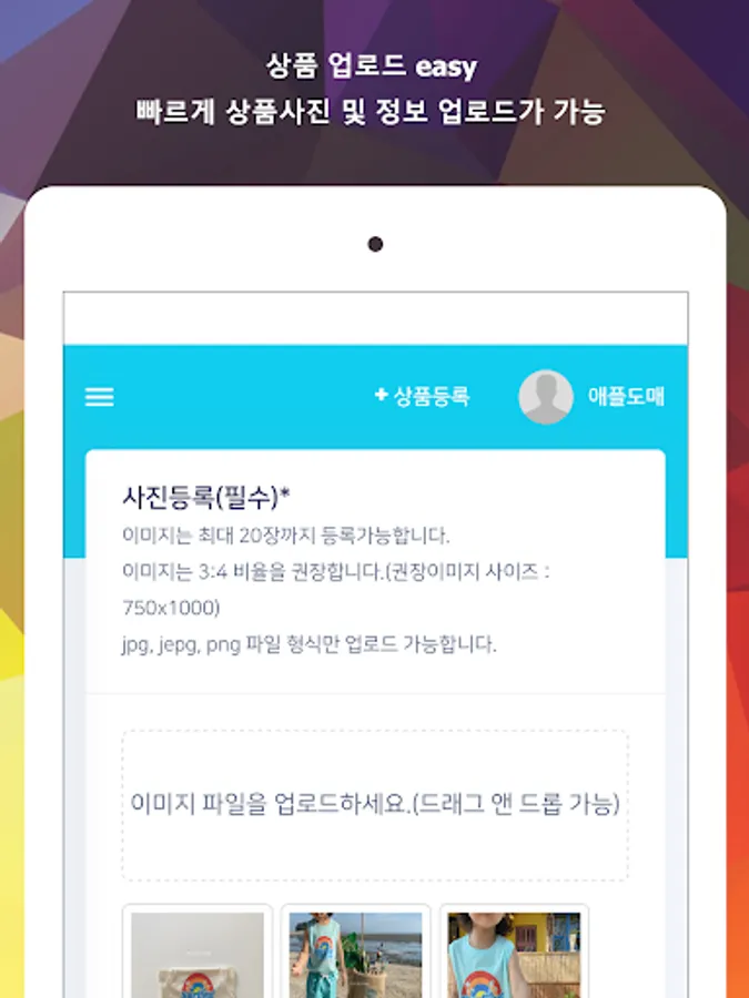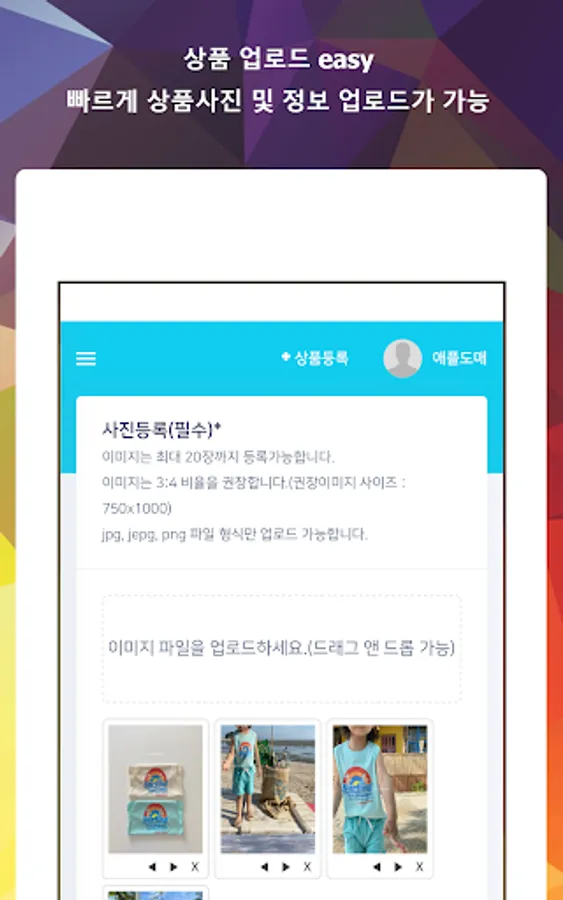 Upload large-capacity photos at once. Up to 20 product photos with drag and drop!