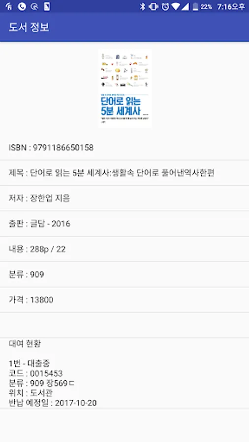 This application can view the bibliographic information and loan status in the national elementary school, middle school, high school library!