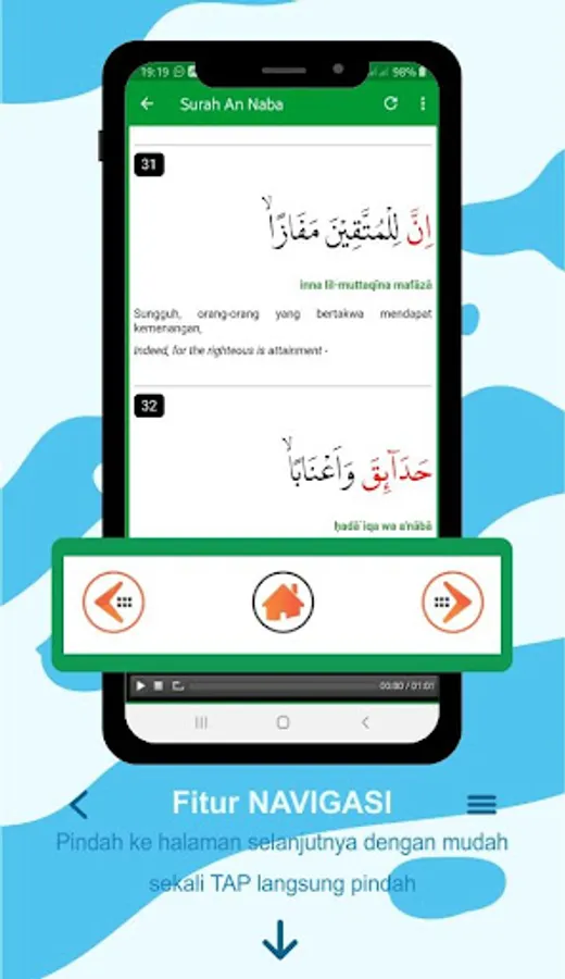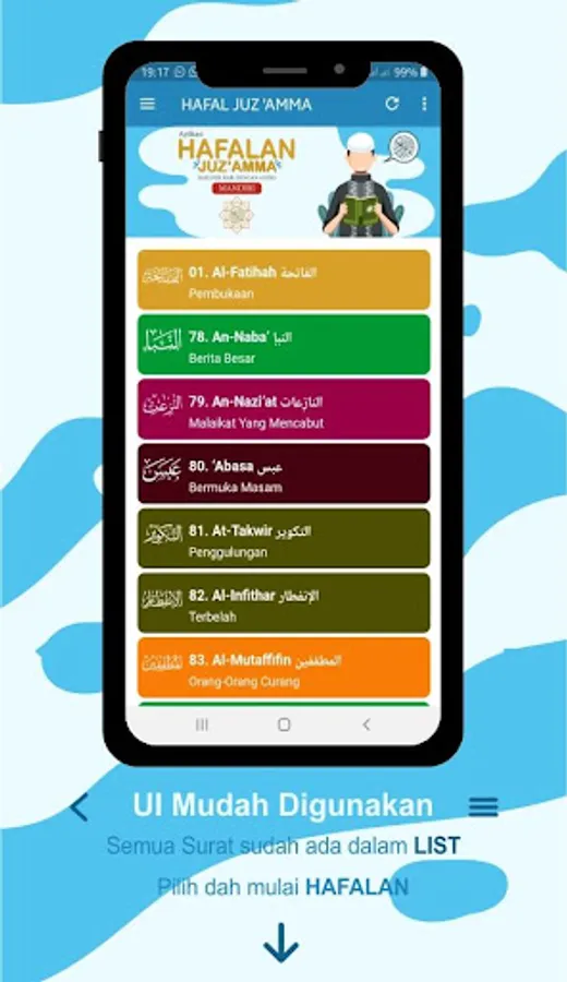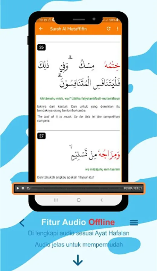 The Juz 'Amma application is equipped with Indonesian and English translations and MP3 files to make it easier to understand the meaning of each verse that is read.