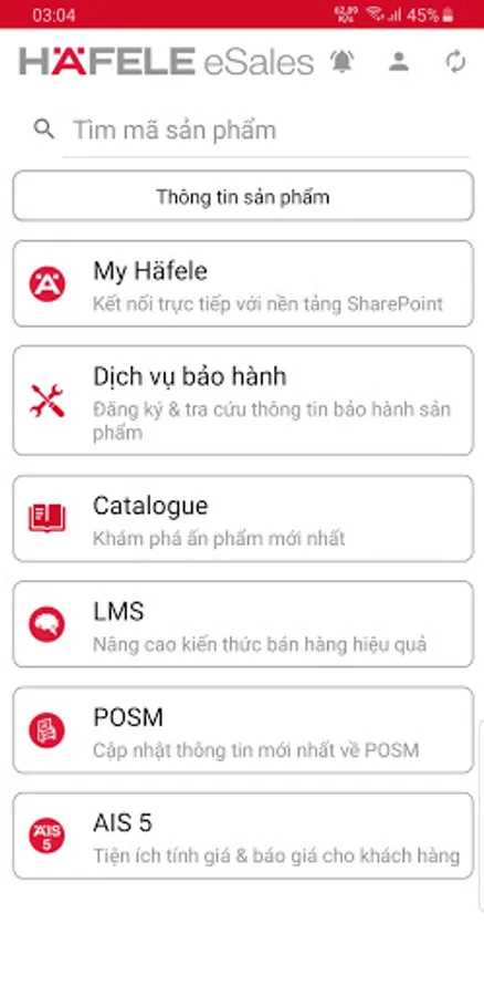 Häfele eSales is an internal application exclusively for employees of Häfele Vietnam with facilities such as: