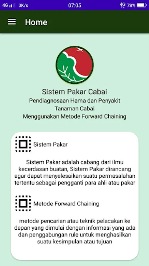An expert system for diagnosing diseases and pests of chili plants is an information system that contains expert knowledge so that it can be used for consultation. Expert knowledge possessed by this Expert System is used as the basis for answering questions