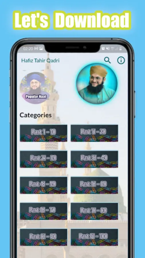In this application we provide Urdu Naat Hafiz Tahir Qadri mp3 offline and there is also a YouTube streaming from Hafiz Tahir Qadri.