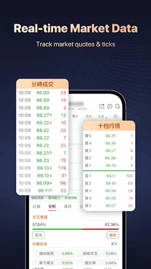 -Real-time market data: Track market quotes & ticks with no delay, and always stay updated on the global market.