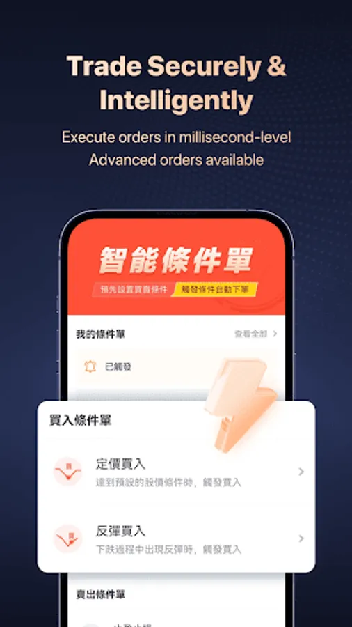 -Instant trading: Execute order at millisecond level for the best accuracy, or set advanced orders to trade when your instructions are met.