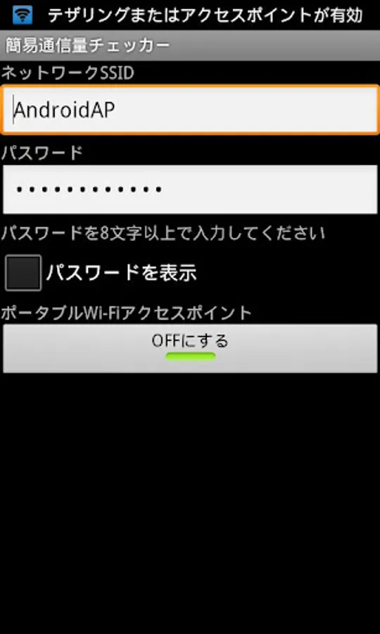 (The screen shot is Wi-Fi tethering setting screen on Android 4.0)