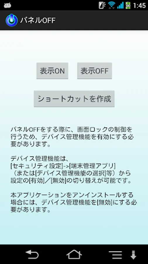 When you are finished using the smartphone, but will turn OFF the panel by pressing the power key, it is an application that can be OFF the panel from the status bar without pressing the hard key.