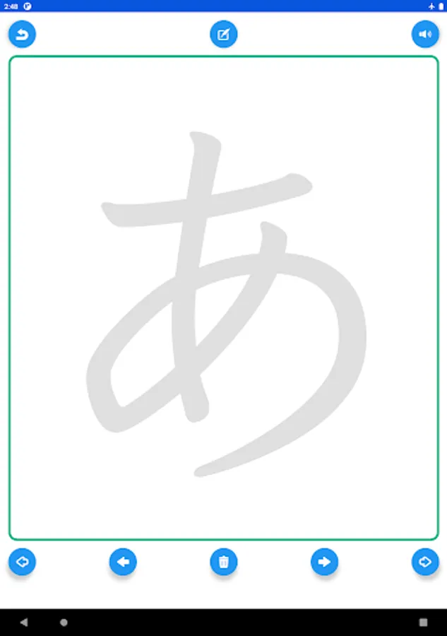 It is an application to practice writing hiragana by listening to the displayed hiragana by voice and tracing it.