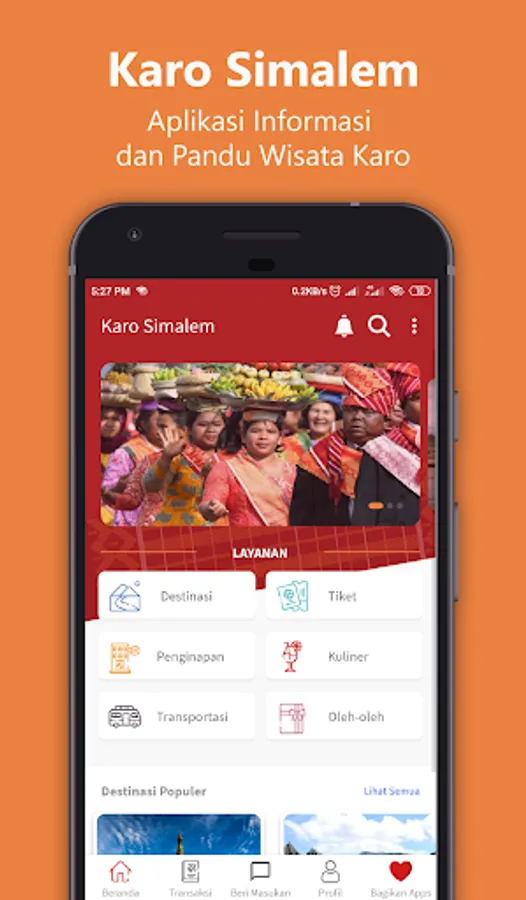 Karo Simalem is an application to develop Tanah Karo tourism and its surroundings. By utilizing a variety of stakeholders ranging from information on tourist destinations, tourist events, attractions, tourist photo galleries, transportation reservations at tourist sites ranging from vehicle rental to ferry ticket reservations, booking lodging, assistance with guides or even photo spots or spots for photography lovers.