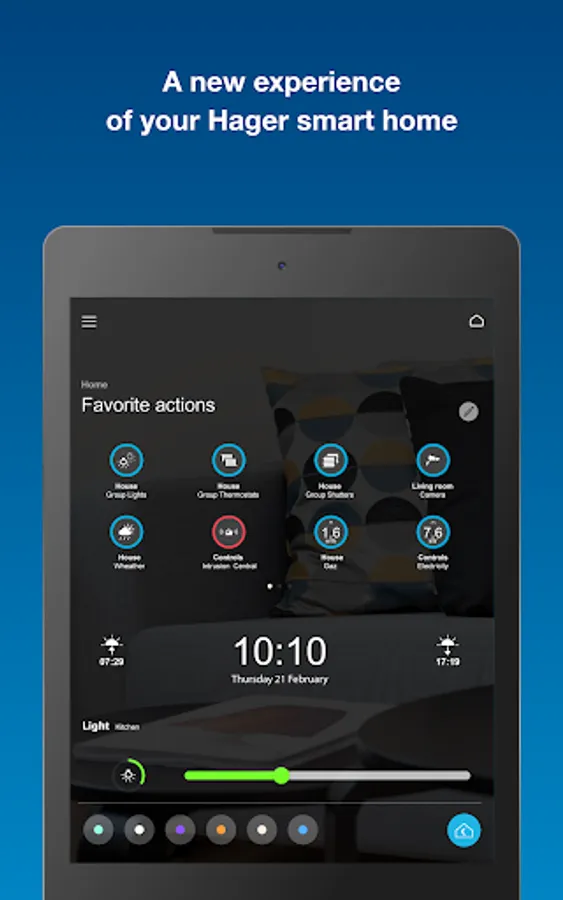 Customize your domovea widgets and create a list of favorites according to your habits. Leaving home? Click on the icon to activate the Leaving home scene.