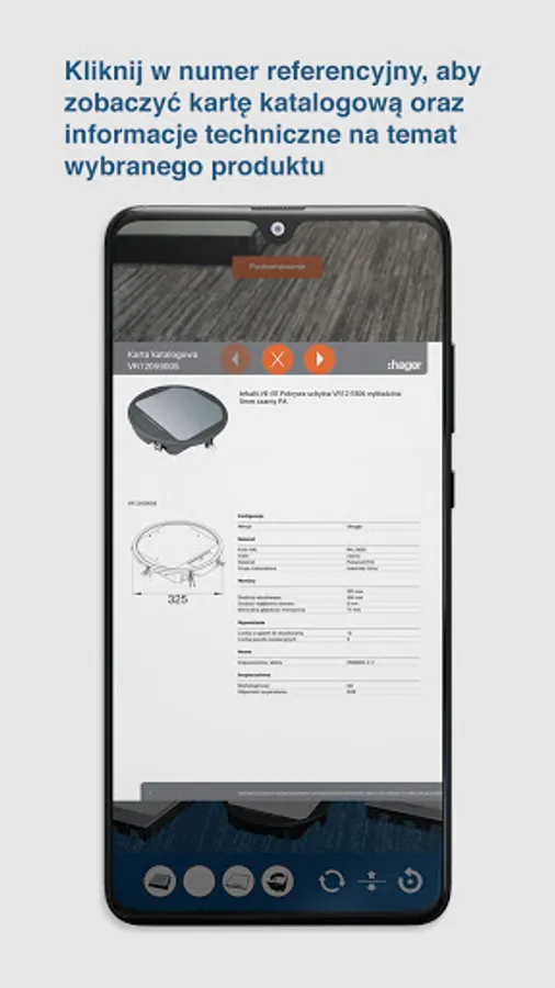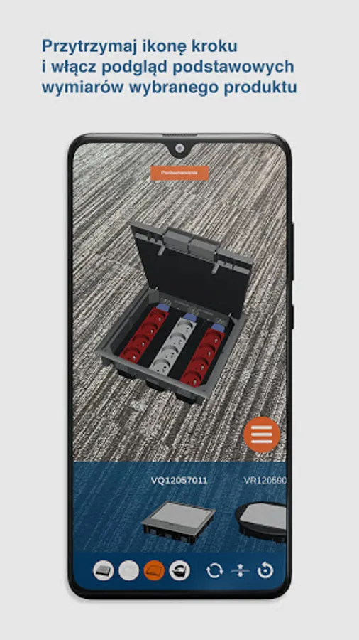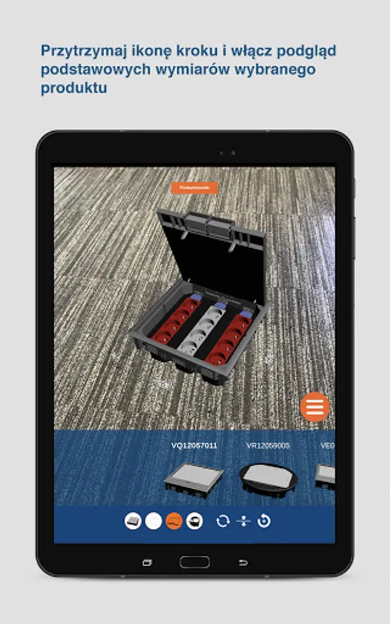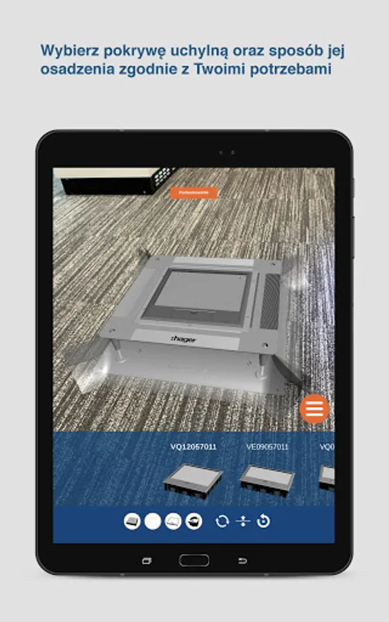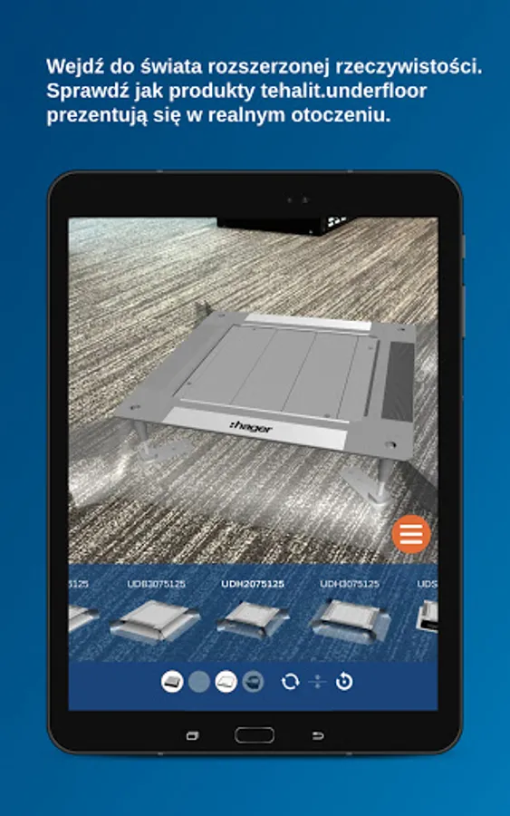 The Hager Underfloor application combines the real world with augmented reality. Using the image that the camera of your smartphone / tablet sees, it puts on it previously prepared 3D models of our products. Thanks to this, in any place where you are, you can view the product, its parameters, dimensions, or the entire catalog card.