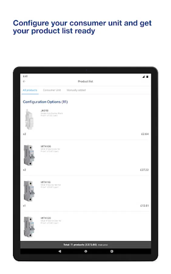 - Automatic consumer unit configurator based on your inventory of products