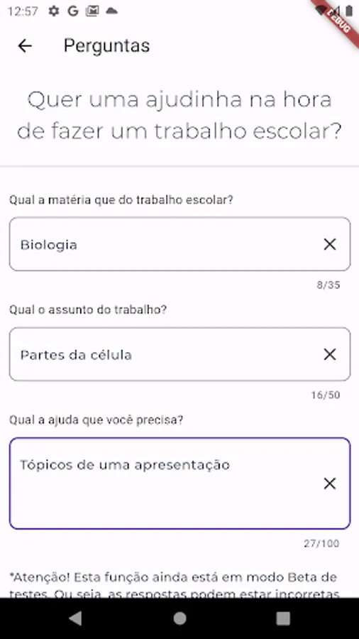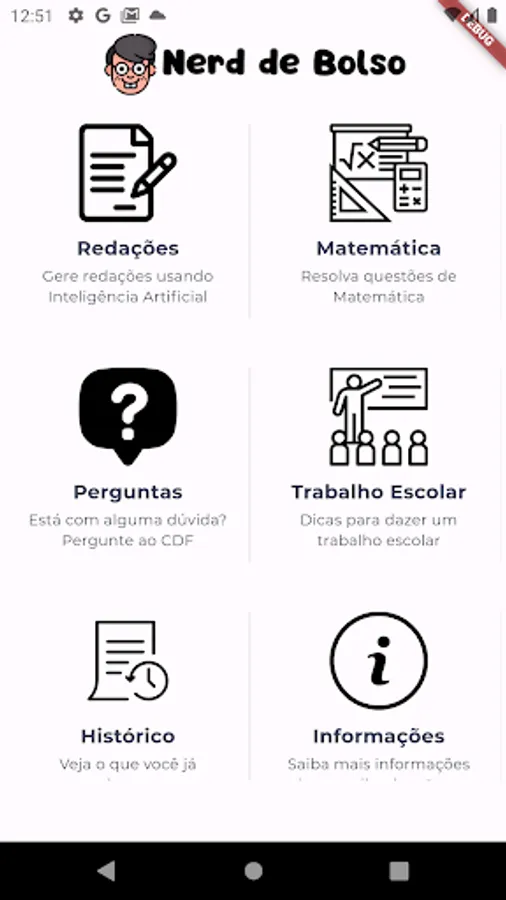 Nerd de Bolso is an artificial intelligence that helps you with your school activities.