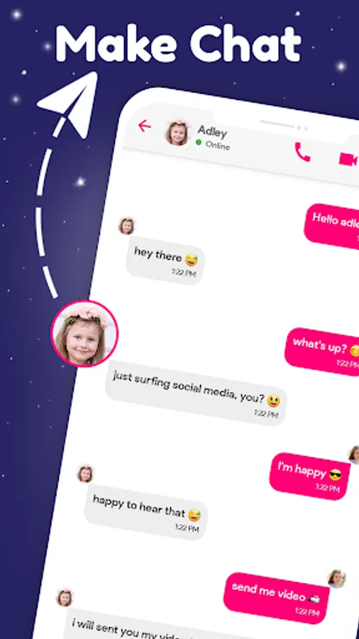 Fake call and chat with Adley is a beautiful application directed to the fans of Adley and all ages, it is very easy to use just follow the steps and get funnier with Adley, So how do use our app?
