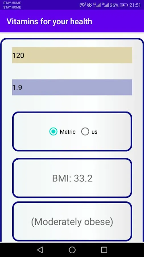 app to know about vitamins &minerals ,BP state , BMI calculator .