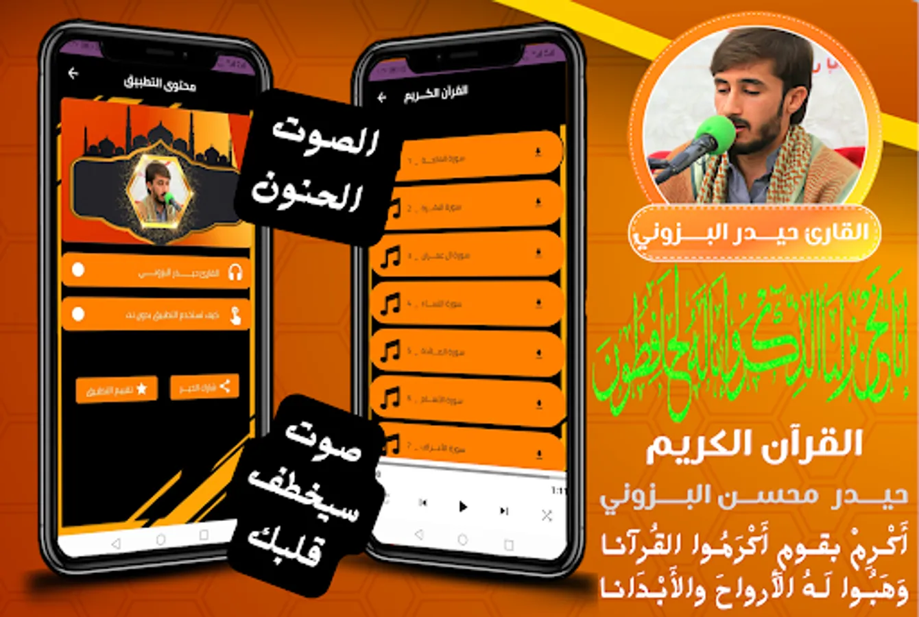✅ 🔸 It is known that the reciter of the Qur’an, Haider Al-Bazuni, has a beautiful and wonderful voice that fills him with tranquility and calmness and takes your heart to another world of tranquility and psychological comfort. The Qur’an in the voice of Haider Al-Bazuni will leave a beautiful impact on yourself, and the application will help you in knowing the virtue of the Noble Qur’an over all speech, as well as the virtue of persisting in Reciting the Qur’an and listening to the Holy Qur’an, and we hope that the application of the reciter Haider Al-Bazuni without the net will help you in that, and it will help you download and memorize the Qur’an with the voice of Haider Mohsen Al-Bazuni without the net