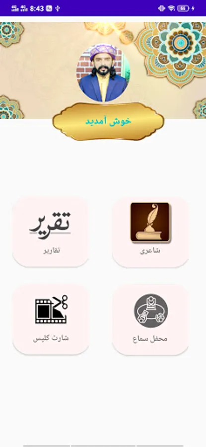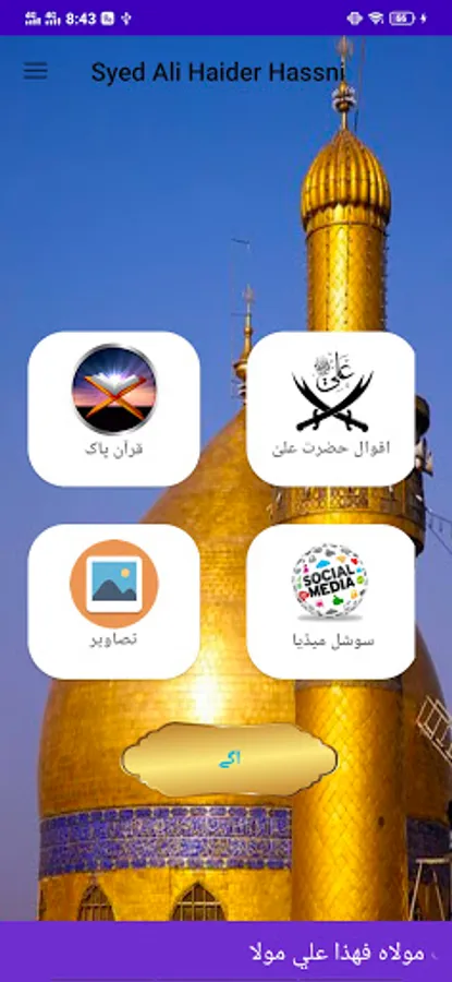 Also there are different more buttons i-Speech ii-Poetry iii-Short Clips iv-Mefil Sama & Also admin Panel etc. There is beautiful splash screen for providing user-friendly environment. The functionality of APP is so simple that every one can understand use of this app & if he wants to contact with owner of the App then he can contact with him through his mobile numbers & as well as Whatsapp number. This app is just developed for advertisement/promotion of Syed Ali Haider Hassni.